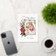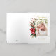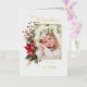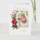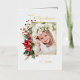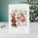 Your cherished holiday photo will make a memorable statement with this classic Christmas floral design. It features a single portrait-aspect photo template with a gold foil border surrounded by vibrant and festive red, green and gold winter botanicals and custom gold foil Merry Christmas calligraphy script greeting. Includes editable foil text fields. The back features editable message and personalisation text fields, a blank element with faux gold border and complementary floral embellishment.