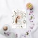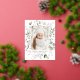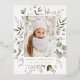 Elegant holiday postcard featuring your vertical photo framed in white with a background of watercolor snowberries, holly, eucalyptus leaves, and lush sage green foliage. Personalise the front of the botanical Christmas postcard with a custom greeting and your family name in gold foil lettering. The foil holiday postcard reverses to display your return address and custom message