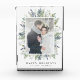 Display your favourite photo with our Elegant Winter Foliage holiday acrylic photo block! The custom photo block features your photo framed by watercolor leaves and foliage in shades of green and navy blue with Happy Holidays displayed below. Personalise the front by changing the greeting and adding your family's name.