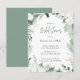 Elegant and romantic Winter Bridal Shower Invitation Card with watercolor illustration of cotton, eucalyptus and winter foliage, modern script calligraphy and a matching green backer. Fully customisable text elements to fit your wedding event.