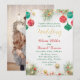 The front features stylish typography with elegant red and gold lettering, while the back showcases a personalised photo of the happy couple — creating a timeless keepsake your guests will cherish. Ideal for December weddings, holiday celebrations, or winter wonderland themes, this invitation blends sophistication with festive cheer.