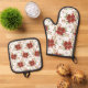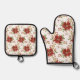 Elegant Winter Poinsettia Floral Pattern Oven Mitt & Pot Holder Set