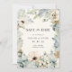 This modern boho winter save the date announcement features beautiful hand-painted watercolor dusty blue leaves and berries, cream anemone flowers, sage greenery, and pinecones arranged as a stylish frame on an ivory | cream background. The back includes a lovely bouquet and monogram. Find matching items in the Winter Dusty Blue Floral Wedding Collection.