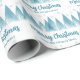 An elegant row of winter fir trees and snowflakes above your personalised Merry Christmas script and your family last name in pretty blue below the snow filled forest. A modern holiday design with your custom message on lovely wrapping paper.