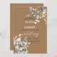An elegant winter watercolor floral wedding invitation featuring dusty blue and grey branches decorating Beige background.
