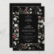 Elegant Winter Watercolor Greenery Black Wedding Invitation
