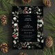 This elegant and festive wedding invitation features a beautiful watercolor frame of holly, eucalyptus, and berries over a chic black background. The typography is classic and timeless. See the collection for coordinating items.