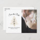 Ask your guests to save your wedding date with this simply elegant design featuring your photo, modern script, black text and a golden starry Christmas tree. Customise it with your photo, wedding date, names and location on the front along with your message, names and return address on the back.