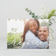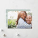 Share holiday greetings with these chic Christmas photo cards featuring your favourite full bleed horizontal or landscape orientated photo. "Rejoice" appears as a white text overlay in elegant hand lettered script typography. Personalise with your names and the year along the bottom. Cards reverse to pastel green watercolor stripes with a snowy overlay.