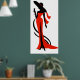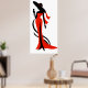 Elegant woman silhouette red dress with wineglass poster