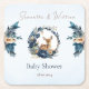 Elegant Woodland Baby Shower Deer Blue Gold Floral Square Paper Coaster
