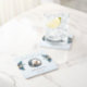 Add a woodland touch to your baby shower with these charming coasters! Featuring a sweet baby deer surrounded by blue and gold florals, they bring rustic elegance to your drink station or party tables. Personalise with names and date for a keepsake your guests will adore.