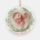 Elegant Wreath First Christmas Photo White Ceramic Tree Decoration