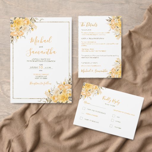 Elegant Yellow and Ivory Rose Wedding Invitation