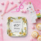 Elegant yellow daffodils floral design "40th Birthday" design featuring a floral square frame of daffodils surrounding a white and green frame on a distressed yellow and white background.