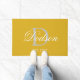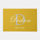 Designed with customisable yellow background and light grey monogram initial on the centre. Personalised with couple's last name in classy white calligraphy script lettering and year established in white numbers on lower front centre. Makes a great housewarming or bridal shower gift idea.