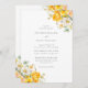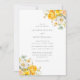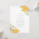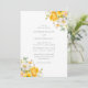 Elegant yellow and peach floral wedding invitation featuring a bouquet of yellow and peach flowers and greenery. Perfect card design for inviting your guests to your yellow and peach wedding party.