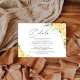 Elegant Yellow Wedding Details Card is a beautifully designed enclosure card featuring soft yellow tones that symbolize joy, warmth, and celebration. With clean typography and an organized layout, this details card clearly presents important wedding information such as the schedule, venue, accommodations, or dress code. Perfect for classic, garden, or modern weddings, it coordinates seamlessly with the rest of the yellow wedding stationery suite while adding a polished and thoughtful touch to your invitation set.