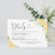 Elegant Yellow Wedding Details Card is a beautifully designed enclosure card featuring soft yellow tones that symbolize joy, warmth, and celebration. With clean typography and an organized layout, this details card clearly presents important wedding information such as the schedule, venue, accommodations, or dress code. Perfect for classic, garden, or modern weddings, it coordinates seamlessly with the rest of the yellow wedding stationery suite while adding a polished and thoughtful touch to your invitation set.