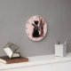 Elegant young woman and black cat round clock