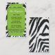 Stylish Zebra Green Business Cards design incorporating a zebra pattern background which you can customise