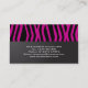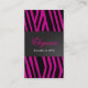 Business card with a pink zebra print design. This card is ready for customisation with your business information. All text can be modified - change the style, colours, sizes, add or remove text fields to suit your needs. If you need any help please email Kirsty on kirsty_pargeter@yahoo.co.uk