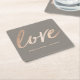 Elegantt Script Faux Foil Rose Gold Love Square Paper Coaster