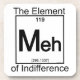 Science has isolated a new chemical in the periodic table - the element of indifference, abbreviated as MEH. This common substance shows up as a verbal shrug of the shoulders when you just don't care. Slang chemistry for the masses – a perfect gift for... whatever.