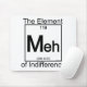 Science has isolated a new chemical in the periodic table - the element of indifference, abbreviated as MEH. This common substance shows up as a verbal shrug of the shoulders when you just don't care. Slang chemistry for the masses – a perfect gift for... whatever.