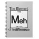 Science has isolated a new chemical in the periodic table - the element of indifference, abbreviated as MEH. This common substance shows up as a verbal shrug of the shoulders when you just don't care. Slang chemistry for the masses – a perfect gift for... whatever.