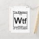Science has isolated a new chemical in the periodic table - the element of confusion, abbreviated as WTF. You encounter it daily - it's responsible for frustration and confusion when texting, gaming, or talking to your boss or parents. Slang chemistry for the masses - a perfect gift for anyone!