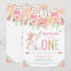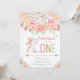 Elephant 1st Birthday Boho Pink Floral Girl Invitation