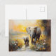 Elephant and Calf Flowers and Sunset Painting Postcard