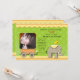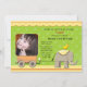 An adorable unisex design featuring an elephant pulling a cart with your child's photo in it. The green, polka dot background has a yellow/orange, scalloped awning.