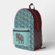 Elephant and Deep Aqua Red Mandalas n Initials Printed Backpack