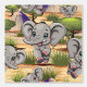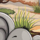 Elephant Cute Baby Happy Cartoon Character runing and jumping on African Savannah Landscape. Original Vector Illustration Copyright BluedarkArt TheChameleonArt.