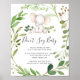 Give your guests a lovely direction with our elephant don't say baby shower activity sign, featuring watercolor greenery eucalyptus garland and elegant handwritten style font.