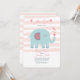 A sweet baby girl shower invitation with a pink and white stripe background and a teal elephant blowing hearts. (<a href="https://www.vecteezy.com/free-vector/february">February Vectors by Vecteezy</a>). <br/><br/>The card is easy to customise with your wording, font, font colour and choice of paper types.<br/><br/>Not exactly what you're looking for? All our products can be custom designed to meet your needs at no extra charge.<br/><br/>Simply contact us at heartfelthelper@gmail.com<br/><br/>Coordinating products available: