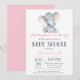 Elephant Baby Shower Invitation Pink and Grey Card. Girl Baby Shower Invite. For further customisation, please click the "Customise it" button and use our design tool to modify this template.