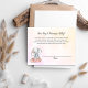 Adorable baby girl elephant with flowers above her ear and a floral wreath spray under her toes. Coral and blush pink watercolor background with floral corners. Enclose with matching invitations for How Big Is Mummy's Belly game at your party.