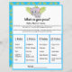 Use my elephant theme baby shower What's In Your Purse? game. Baby shower guests must search through their handbags and tally up the total amount of items on this list. The person with the highest score wins! Check out the rest of the selection of coordinating baby shower for more boy elephant baby shower items in the collection!