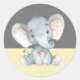 Elephant Baby Shower Yellow and Grey Classic Round Sticker