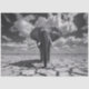 This striking black and white digital artwork features a majestic elephant walking across dry, cracked earth, capturing a powerful and dramatic scene. The realistic details and high-contrast design give the piece a photographic quality, emphasising the strength and resilience of the elephant in a drought-stricken landscape.