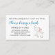 A great insert card to add with your baby shower invitations when requesting books in lieu of cards. These bring a book cards are easily customised with the text of your choice in the font style you prefer. Featuring an adorable elephant illustration and poem: "ONE SMALL REQUEST, WE HOPE NOT TOO HARD
