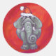 Elephant Christmas On Red Classic Round Sticker