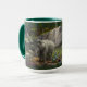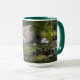 Peace, serenity, solace, a kingdom of lush green plants and waterfalls bathed in daily rains surrounds the Elephants drinking purified waters through dappled sunlight. / W/Green handle & Green inside cup /