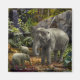 Peace, serenity, giving solace, a nurturing rain forest kingdom of lush green plants bathed in daily rains surrounds this Elephant Family drinking purified waters through the dappled rays of sunlight.