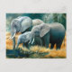 Beautiful and stunning elephant family postcard featuring a family of elephants in an exotic safari taking some drinks of water, Truly lovely postcard to send anyone