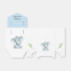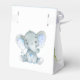 Cute watercolor elephant theme favour box with simple white background and foliage.