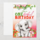 Elephant Floral 1st Birthday Card